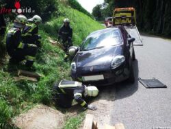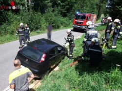 WEISTRACH (NÖ): Am 13. Juli 2017, um 14.11 Uhr, wurde die Freiwillige Feuerwehr Weistrach zu einer Fahrzeugbergung nach Hartlmühl alarmiert. Auf einer schmalen Straße fuhren ein Traktor mit Doppelschwader und ein PKW aneinander vorbei, wobei die Pkw-Lenkerin mit ihrem Fahrzeug in den Straßengraben fuhr.