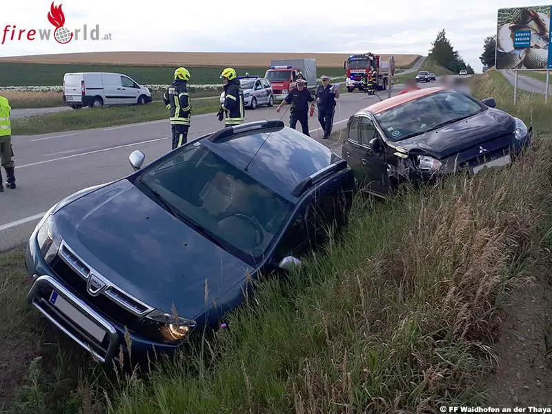 Die Lenkerin des Mitsubishi wurde dabei leicht verletzt und wurde vom Roten Kreuz Waidhofen an der Thaya ins Landesklinikum zur weiteren Versorgung abtransportiert. Beim Eintreffen der Feuerwehr Waidhofen hatte die FF Vestenpoppen-Wohlfahrts die Unfallstelle bereits abgesichert. Nachdem die Unfallaufnahme durch die anwesende Exekutive abgeschlossen war, konnte die Bergung beider Fahrzeuge begonnen werden.