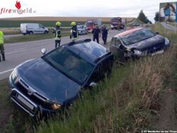 WAIDHOFEN AN DER THAYA (NÖ): Am 14. April 2017, um 19 Uhr, wurden die Feuerwehren Vestenpoppen-Wohlfahrts und Waidhofen/Thaya zu einem Verkehrsunfall auf der Bundesstraße 5 alarmiert. Zwei Fahrzeuge landeten nach einem Zusammenstoß im Straßengraben und mussten geborgen werden.