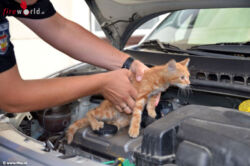 Jedoch verweigerte der Ausreißer alle Befreiungsversuche der Florianis und verschanzte sich direkt unter die Motorhaube. Ein ebenfalls verständigter Pannendienstfahrer konnte dann die versperrte Fahrzeugtüre öffnen. Somit war nun ein Zugriff, durch Entriegelung der Motorhaube, von oben her möglich ohne das Fahrzeug zu beschädigen. Rasch konnte dann der unverletzte Stubentiger von einem Beamten der Stadtpolizei in Empfang genommen werden. Eine Verlustmeldung lag zu diesem Zeitpunkt bei der Exekutive nicht auf und gechipt war der sehr junge Ausreißer leider auch nicht, um den Besitzer schnell ausfindig machen zu können.