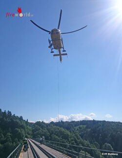 Eine verletze Person hing in ca. 40 m Höhe kopfüber von der Brücke. Nach Sicherung der verletzten Person wurde eine Rettung mittels Tau durch den Rettungshubschrauber vorgenommen.Um 10:00 Uhr rückte die FF Eichberg wieder ins Feuerwehrhaus ein.