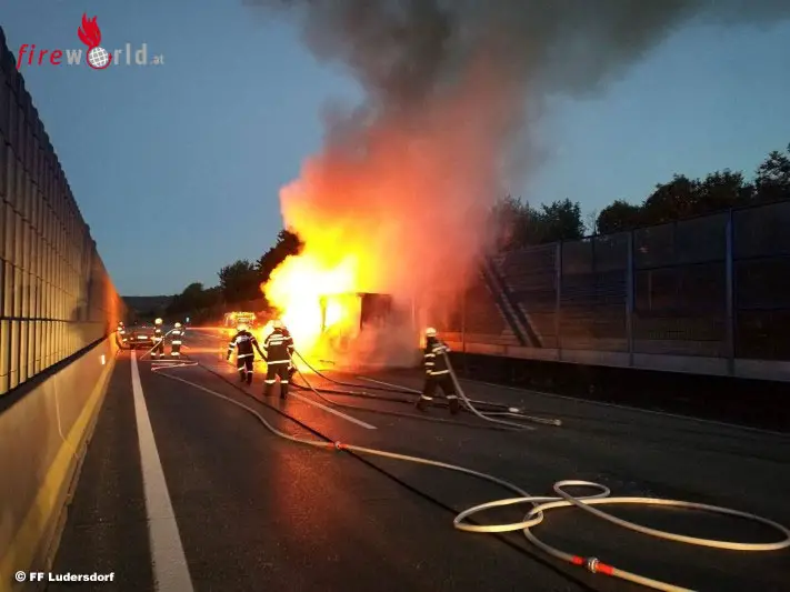 GLEISDORF / LASSNITZHÖHE (STMK): In den frühen Morgenstunden kam es am Montag, 17. Juli 2017, durch einen Lkw-Brand auf der A2 Südautobahn zu einer Totalsperre der Autobahn in Fahrtrichtung Klagenfurt zwischen Gleisdorf – West und Laßnitzhöhe.