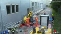 STAINACH (STMK): Um 13:45 Uhr des 17. Juli 2017 wurde die FF Stainach in eine Käserei gerufen, nachdem sich in einem Lagerraum eine chemische Reaktion unter Beteiligung von Phosphorsäure ereignete. Etwa 300 Liter Phosphor P3 waren – vermutlich aufgrund einer chemischen Reaktion mit Chlor – aus einem Gebinde ausgetreten, etwa 100 Liter des Stoffes bestanden aus Phosphorsäure.