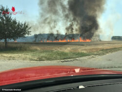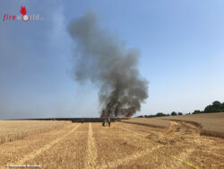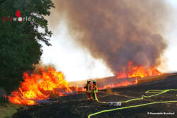Beim Eintreffen stellte sich den ersten Einsatzkräften ein verheerendes Bild dar. Etwa 12 Hektar eines dortigen Weizenfeldes standen in Flammen. Das beschreibt eine Größe von etwa 16 Fußballfeldern. Aufgrund der enormen Trockenheit, breitete sich das Feuer rasend schnell aus. Die Flammen drohten auf ein direkt angrenzendes Gebäude des Hofes und an mehreren Stellen auf Bäume und Waldflächen überzugreifen.