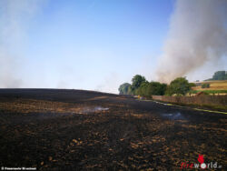 Die Nachlöscharbeiten zogen sich jedoch noch einige Stunden hin. Das Feld wurde mit ausreichend Wasser benetzt um ein erneutes entzünden der Flammen zu verhindern. Auch wurde das abgebrannte Feld teilweise von Traktoren umgegraben. Erst in den Nachmittagsstunden konnte der Einsatz weitestgehend abgeschlossen werden.