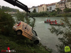 STEYR (OÖ): Am Abend des 20.07.2017 wurde der technische Zug und der Löschzug 1 der Feuerwehr Steyr zu einem Verkehrsunfall mit eingeklemmter Person auf den Enns-Kai alarmiert. Da am Alarmierungstext „Pkw im Fluss“ dabei stand, wurde umgehend die Wasserwehr nachalarmiert.