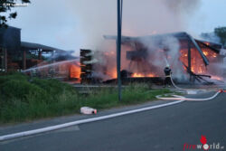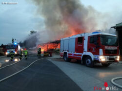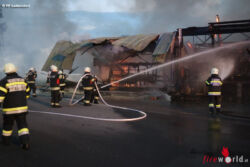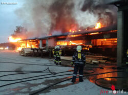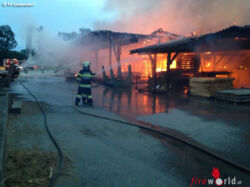 UNTERFLADNITZ (STMK): Gegen 20.15 Uhr kam es Donnerstagabend, 20. Juli 2017, aus noch ungeklärter Ursache zu einem Großbrand in einem Sägewerk in Unterfladnitz nahe Weiz. Umgehend wurde Abschnittsalarm ausgelöst und neun Feuerwehren mit 212 Mann und 34 Fahrzeugen rückten an.