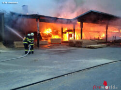 Stmk: Abschnittsalarm bei Großbrand in Sägewerk in Unterfladnitz