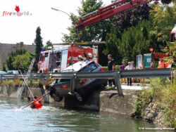 Die Bergung des Fahrzeugs gestaltete sich schwierig, da das Fahrzeug in der Leitplanke hing, die teilweise aus ihrer Verankerung gerissen worden war. Um den Treibstofftank auf der Straßenkante nicht zu beschädigen und damit ein Auslaufen in den Mühlbach zu verhindern, musste der PKW durch die Mitglieder der FF St. Pölten-Unterradlberg, gemeinsam mit Kameraden der FF St. Pölten-Stadt, zuerst gegen Abrutschen gesichert und schließlich vorsichtig mit einem Kran weggehoben werden. Hierfür war es notwendig, sich dem gesicherten PKW durch den Mühlbach zu nähern und ihn auch von dieser Seite am Kran zu befestigen.