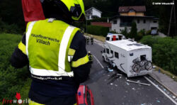 Glücklicherweise wurde er dabei nicht unter dem Fahrzeug eingeklemmt. Nach notärztlicher Versorgung des Lenkers wurde dieser ins LKH Villach eingeliefert. Die Insassen des Wohnmobiles konnten ihr Fahrzeug selbständig verlassen. Ein Fahrradfahrer wurde ebenfalls in den Unfall verwickelt. Inwieweit die weitern Beteiligten verletzt sind kann derzeit nicht genau geklärt werden.