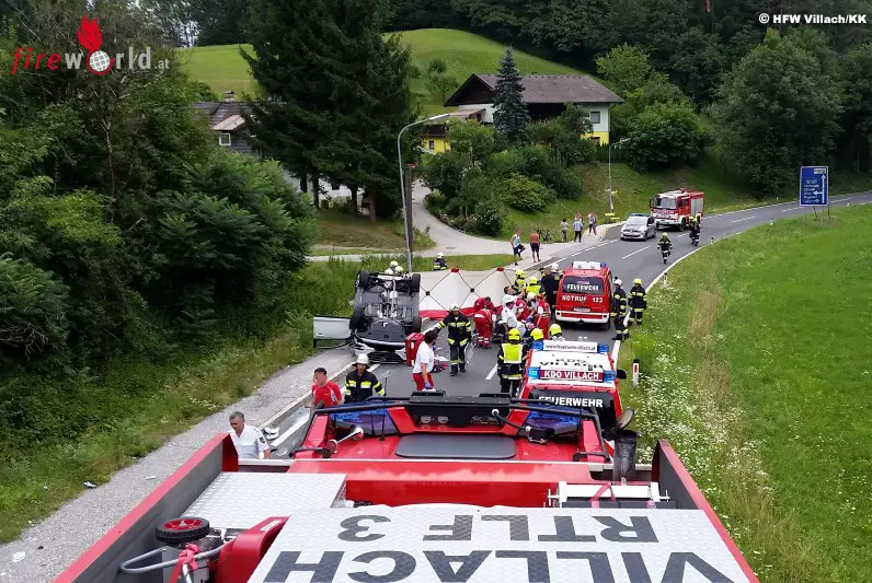 VILLACH (KTN): Gegen 15:15 Uhr des 23. Juli 2017 wurde die Hauptfeuerwache Villach gemeinsam mit der FF Perau und Maria Gail zu einem schweren Verkehrsunfall mit eingeklemmter Person und mehreren beteiligten Fahrzeugen auf der Grossattelstraße in Villach alarmiert.
