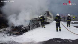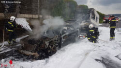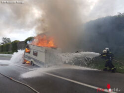 Nö: Wohnwagengespann in Vollbrand → Vierköpfige Urlauberfamilie kann sich retten