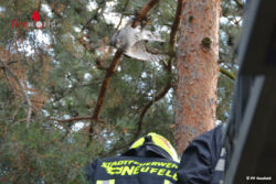 Das Tier hatte sich mit seinem Geschühriemen in einem Baum verfangen, hing in einer Höhe von 10 m kopfüber und drohte zu verenden. Feuerwehrleute und Tierrettung näherten sich mit der Drehleiter dem Greifvogel, lösten den verwickelten Geschühriemen und konnten das Tier sicher zu Boden befördern. Nachdem der Habicht die Nacht zur Beobachtung in einer Greifvogelstation verbracht hatte, konnte er wieder seinem Besitzer übergeben werden. Der Habicht war während der Reinigung seiner Voliere entwischt, indem er den Knoten seines Geschühriemens selbst gelöst hatte.