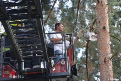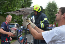 NEUFELD (BGLD): Die burgenländische Tierrettung rief am Samstagabend, 22. Juli 2017, die Feuerwehr der Stadt Neufeld/Leitha zu Hilfe, um auf dem Mobilheimplatz des Neufeldersees einen Habicht aus einer lebensgefährlichen Situation zu retten.