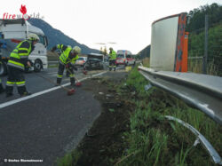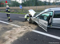MAUTERN (STMK): In den Morgenstunden des 29. Juli 2017 ist es auf der A9 der Pyhrn Autobahn kurz nach der Auffahrt Mautern in Fahrtrichtung Slowenien zu einem Verkehrsunfall mit einem Pkw gekommen. Der Pkw touchierte aus unbekannter Ursache die Mittelleitschiene und schleuderte daraufhin quer über die Fahrbahn auf den rechten Fahrstreifen, wo das Fahrzeug schwer beschädigt zum Stillstand kam.