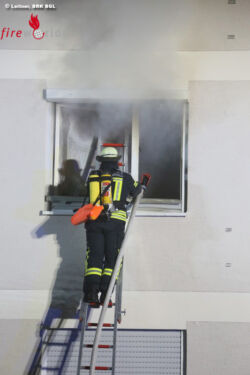 Einsatzkräfte von Feuerwehr und Rotem Kreuz haben am frühen Montagmorgen, 31. Juli 2017, einen bewusstlosen 54-jährigen Mann aus einem verrauchten Apartment in einem Mehrfamilienhaus in der Ludwig-Thoma-Straße gerettet und erfolgreich wiederbelebt; weitere drei Bewohner wurden durch Rauchgas leicht verletzt, wobei eine internistisch vorerkrankte 69-jährige Frau mit Atemproblemen ebenfalls ins Krankenhaus musste; die 14 restlichen Bewohner kamen nach erster Einschätzung mit dem Schrecken davon. Nachbarn hatten gegen 4.10 Uhr die erst vor rund sechs Wochen installierten akustischen Rauchmelder gehört, einen Notruf abgesetzt und die weiteren Bewohner gewarnt.