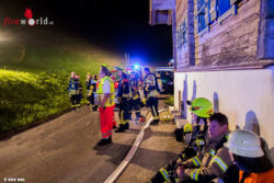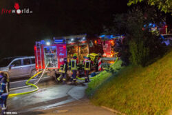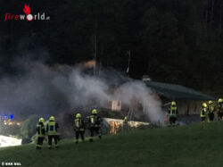 BISCHOFSWIESEN (BAYERN): Am Samstagabend, 29. Juli 2017, gegen 20.45 Uhr musste ein Großaufgebot von Feuerwehr, Rotem Kreuz, Technischem Hilfswerk (THW) und Polizei in den Vierradweg in Bischofswiesen ausrücken, wo oberhalb der Ortsteile Strub und Engedey der hölzerne Anbau eines abgelegenen Zweifamilienhauses in Vollbrand stand und abbrannte.