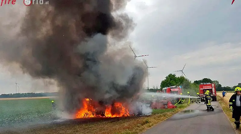 POTTENDORF (NÖ): Nur durch das umsichtige Verhalten eines Lenkers einer Erntemaschine und dem schnellen Eingreifen der Feuerwehr konnte heute Freitag, dem 7. Juli 2017, beim einem Brand im Bezirk Baden Schlimmeres verhindert werden.