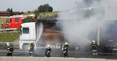 Oö: Brennender Lkw beim Wartbergtunnel bei Ried im Traunkreis