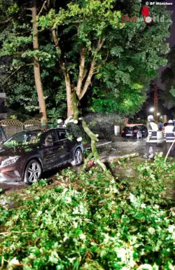 Dabei handelte es sich meist um die klassischen Unwettereinsätze, wie Äste auf Fahrbahnen oder Gehwegen sowie vereinzelt vollgelaufene Keller. Nennenswert ist ein Einsatz in der Pienzenauerstraße in Bogenhausen. Dort hat ein größerer Ast zwei geparkte Fahrzeuge stark beschädigt. Die Einsatzkräfte mussten abgebrochenen Ast zersägen und von den Fahrzeugen und der Straße räumen, damit diese wieder befahrbar war. Die Arbeiten und die damit verbundene Straßensperre dauerten knappe zwei Stunden an. Zum Sachschaden kann keine Aussage getroffen werden.