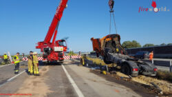Zur Unterstützung bei der Bergung der restlichen zwei Autos und Durchtrennen der Mittelleitschiene wurde die FF Gerasdorf nachalarmiert. Für die Bergung des schwer deformierten Lastwagens wurde der in Mistelbach stationierte Feuerwehr Kran angefordert.
