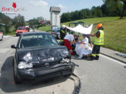 ALTMÜNSTER (OÖ): Ungebremst prallte eine junge Mühlviertlerin am späten Freitagvormittag, 3. August 2017, auf einen vor ihr links abbiegenden Pkw in der Hatschekstraße in Altmünster.