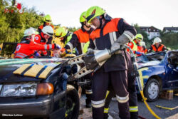 Plötzlich drang in den Abendstunden Rauch aus einem verunfallten Auto in Anger; Schaulustige und Nachbarn standen bereits auf der Straße und begutachteten das realitätsnahe Szenario, das zum Glück nur eine groß angelegte Einsatzübung der Feuerwehren und des Roten Kreuzes war. Kurz nach der Alarmierung machten sich mehrere Fahrzeuge des Roten Kreuzes und der Feuerwehr auf den Weg zum Einsatzort: Schläuche wurden verlegt, die Lage erkundet, wobei die ersten Retter an die Leitstelle meldeten: „Mehrere Menschen im brennenden Pkw eingeschlossen!“ Innerhalb kürzester Zeit waren alle Einsatzkräfte vor Ort und die Brandbekämpfung lief. Die Sanitäter retteten zusammen mit den Feuerwehren die ersten Übungsmimen aus den Fahrzeugen.