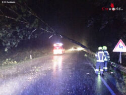 Oö: Umgestürzten Baum im strömenden Regen von der B1 entfernt