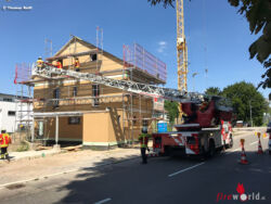 Deutschland: Personenrettung über Drehleiter auf Baustelle in Weingarten