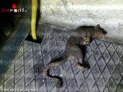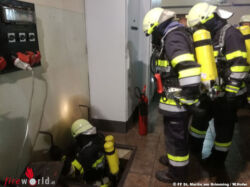 Nach vollständiger Stromabschaltung gab Einsatzleiter HBI Martin Auzinger den Befehl zur Erkundung mit schwerem Atemschutz im Untergeschoss. Der Atemschutztrupp fand verbrannte Kabel und ein totes Nagetier vor. Eine Ratte hatte den Erdschluss verursacht. Die Brandbekämpfung erfolgte dann mit schwerem Atemschutz und anschließend wurde das Untergeschoss noch entlüftet.