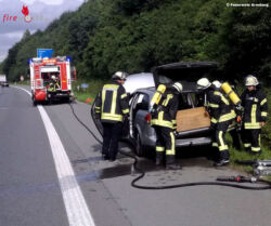 ARNSBERG (DEUTSCHLAND): Zu einem Pkw-Brand auf der Autobahn A 46 in Fahrtrichtung Werl wurde die Feuerwehr Arnsberg am Mittwochmorgen, 9. August 2017, gerufen. Um 9.26 Uhr machen sich Kräfte der Wache Neheim sowie der Feuerwehr aus Hüsten auf den Weg zum Einsatzort, der an der Anschlussstelle Hüsten lag.