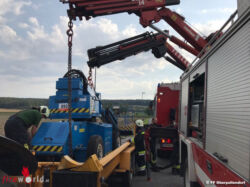 1xT1 -> Bergung einer Hubarbeitsbühne, welche beim Entladevorgang von der Ladefläche fiel. Die Bühne wurde mit den Kränen des SRFA und SOF geborgen.