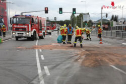 Der Unfall ereignete sich im Kreuzungsbereich der Kürnbergstraße mit der Straße An der Trauner Kreuzung im Gemeindegebiet von Pasching. Aus bisher unbekannter Ursache kam es im Kreuzungsbereich zu einem Zusammenstoß zwischen einem Auto und einem Klein-LKW. Eine Person wurde bei dem Unfall offenbar leicht verletzt. Die Feuerwehr wurde zu den Aufräumarbeiten alarmiert und führte diese durch. Ausgelaufene Betriebsmittel mussten gebunden und die Fahrbahn anschließend gereinigt werden.