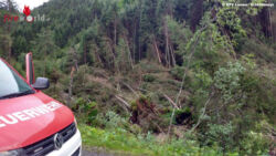 Dort fanden Bäume im Ausmaß von ca. 10 Hektar Waldfläche im aufgewichten Boden keinen Halt mehr und stürzten um. Getroffen wurde auch ein Wohnhaus und ein Carport; die FF Stein an der Enns rückte aus, um die Bäume zu entfernen. Im Einsatz stand die FF Stein mit 3 Fahrzeugen sowie ein LKW mit Kran.