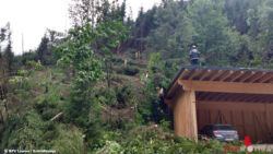 KLEINSÖLK (STMK): Gegen 18:30 Uhr des 10. August 2017 zog eine Regenfront mit starken Sturmböen über das Ennstal. Massiv betroffen war der Ortsteil Hinterwald in der Kleinsölk.
