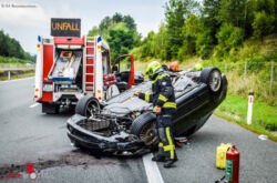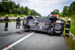 Der Mercedes wurde im Anschluss mittels RLFA Seilwinde wieder auf die Räder gestellt und gesichert auf dem Pannenstreifen abgestellt und die Fahrzeugbatterie abgeschlossen. Den Abtransport übernahm ein Abschleppunternehmen.