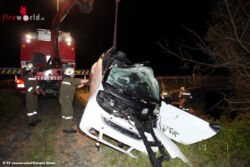 JENNERSDORF (BGLD): Am 14.08.2017 um 00.37 Uhr, wurde die Feuerwehr Jennersdorf zu einem Verkehrsunfall auf der B57, Höhe „Brücke über die Raab“ alarmiert. Beim Eintreffen der Feuerwehr stellte sich heraus, dass der 24-jährige Lenker aus Graz bei dem Unfall aus seinem Cabriolet geschleudert und im Flussbett der Raab bewusstlos zu liegen gekommen war.