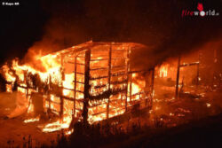 RUEUN (SCHWEIZ): In einem Hühnerstall in Rueun ist in der Nacht auf Montag, 14. August 2017, ein Brand ausgebrochen. Das Feuer zerstörte den Stall komplett. 2.000 Hühner starben.