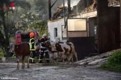 Einerseits wurden diese aus dem Stall getrieben, viele konnten aber auch durch Frischluftzufuhr im Gebäude bleiben, weil sie darüber eine Massivdecke hatten und diese schützte sie vor dem Brand. Leider kam für acht Kälber die Hilfe zu spät.