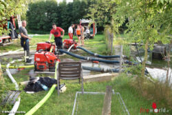 Von einem Löschteich und dem privaten Swimmingpool wurde mit mehreren Tragkraftspritzen eine ausreichende Löschwasserversorgung aufgebaut, welche in weiterer Folge auch durch einen Pendelverkehr von Tanklöschfahrzeugen unterstützt wurde. Gerade die heißen Temperaturen machten den Einsatzkräften zu schaffen, so musste ausreichend Reservepersonal zur Ablöse bereitgestellt werden. Verletzt wurde niemand. In weiterer Folge wird mittels Kran der großteils bereits abgelöschte Dachstuhlbereich entfernt, um die letzten Glutnester löschen zu können.