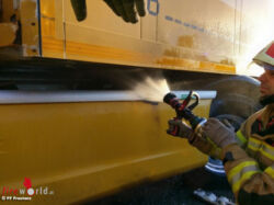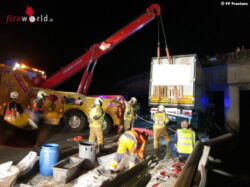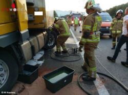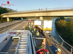 Ein Entstehungsbrand an der Zugmaschine wurde durch Passanten gelöscht, anschließend durch die Freiw. Feuerwehr Frastanz abgelöscht. Außerdem mussten noch ca. 1300 Liter Diesel aus den Tanks des Lastwagens auf Fässer umgepumpt werden. Für die Dauer der Bergung war die Autobahn A14 in Fahrtrichtung Tirol gesperrt. Die Feuerwehr Frastanz war mit sechs Fahrzeugen und 60 Mann im Einsatz.