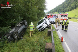 Mitarbeiter der Forellen-Räucherei hatten den Unfall bemerkt und per Notruf die Leitstelle Traunstein verständigt, die sofort die Freiwilligen Feuerwehren Schneizlreuth und Unken und das Reichenhaller Rote Kreuz zum Unfallort schickte. Die Sanitäter untersuchten alle sieben Fahrzeuginsassen, mussten aber niemanden mit ins Krankenhaus nehmen. Die Feuerwehr stellte den Brandschutz sicher und leitete den restlichen Verkehr wechselseitig an der Einsatzstelle vorbei, so dass es trotz des dichten Reiseverkehrs zu keinen längeren Rückstauungen kam. Beamte der Reichenhaller Polizei nahmen den genauen Hergang auf.