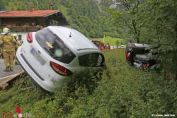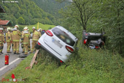 Eine vierköpfige Urlauber-Familie aus Niederösterreich war von Unken kommend in Richtung Reichenhall unterwegs und musste mit ihrem schwarzen VW-Sharan anhalten, um links zur Räucherei abzubiegen, was zwei nachfolgende Autofahrer zu spät bemerkten. Ein nur mit einem Fahrer besetzter schwarzer Opel Mokka aus Salzburg und ein weißer Ford C-Max mit zwei Insassen aus Sachsen-Anhalt konnten nicht mehr rechtzeitig anhalten, wobei der Sharan am rechten Heck getroffen wurde, der Mokka auf dem Dach in Straßengraben landete und der C-Max auf der Holzleitplanke stehen blieb.