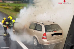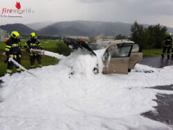 Beim Eintreffen der Einsatzkräfte stand der Pkw in Vollbrand. Dieser konnte rasch mittels Hochdruck und Schaummittel gelöscht werden.