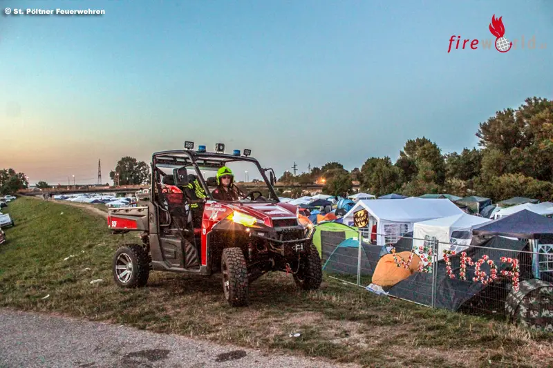 ST. PÖLTEN (NÖ): Seit Sonntag, 13. August 2017, stehen bereits zahlreiche Feuerwehrmänner und Frauen von verschiedenen Feuerwehren im Einsatz am Frequency in St. Pölten. Für den Ernstfall stehen den eingesetzten Kräften spezielle Fahrzeuge zur Verfügung.