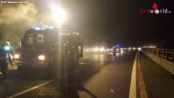 Dies zeigte enorme Wirkung sodass der Brand rasch weitgehend abgelöscht war. Die FF Trieben unterstüzte abschließend noch die Nachlöscharbeiten mit einem zusätzlichen Rohr sowie der Wärmebildkamera. So konnte die überaus wertvolle Ladung des Lkw durch das schnelle Handeln seitens Feuerwehr gänzlich vor den Flammen gerettet werden. Nach etwa 1,5 Stunden übergab die Einatzleitung den Einsatzort an Autobahnpolizei sowie Asfinag ehe die vollständige Einsatzbereitschaft gegen 00:00 Uhr wiederhergestellt war.