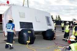 Erst nun konnte mit der Bergung des Wohnwagens begonnen werden. Dazu setzte die Freiwillige Feuerwehr Wiener Neudorf Hoch- und Niederdruck Hebekissen ein, um den umgestürzten Anhänger möglichst schonend zu bergen. Abermals musste der Feuerwehrkran eingesetzt werden um die Last zu sichern.