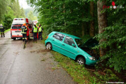 GRAMASTETTEN (NÖ): Zu einem schweren Verkehrsunfall mit eingeklemmter Person wurden die Feuerwehren Gramastetten und Walding am 19. August 2017 alarmiert. Eine 71-jährige Puchenauerin geriet mit ihrem Fahrzeug von Gramastetten kommend Richtung Walding auf die andere Straßenseite und prallte frontal gegen einem Baum.