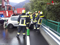 PAYERBACH (NÖ): Am 20. August 2017 wurde die Freiw. Feuerwehr Payerbach in den frühen Morgenstunden zu einem Verkehrsunfall auf der B 27 Richtung Gloggnitz Höhe Ortseinfahrt alarmiert. Eine Lenkerin kam mit ihrem Fahrzeug in der Rechtskurve ins Schleudern und prallte gegen die Leitschiene im Brückenbereich.