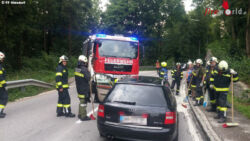 Oö: Aufräumarbeiten nach Verkehrsunfall in Sandhäuslberg in Ohlsdorf